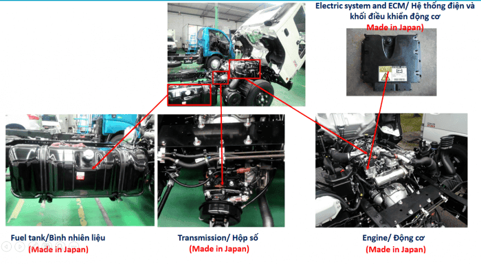 ● 90% các linh kiện chính được sản xuất và nhập khẩu từ ISUZU Nhật Bản